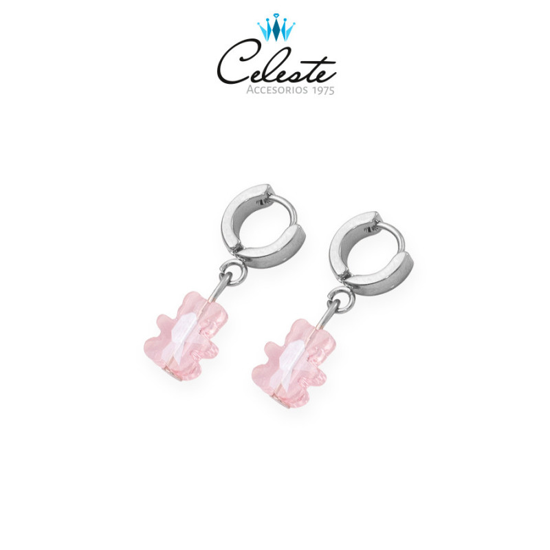 Z1636 - CANDONGA ACERO HUGGUIES DIJE OSITO EN CRISTAL ROSADO