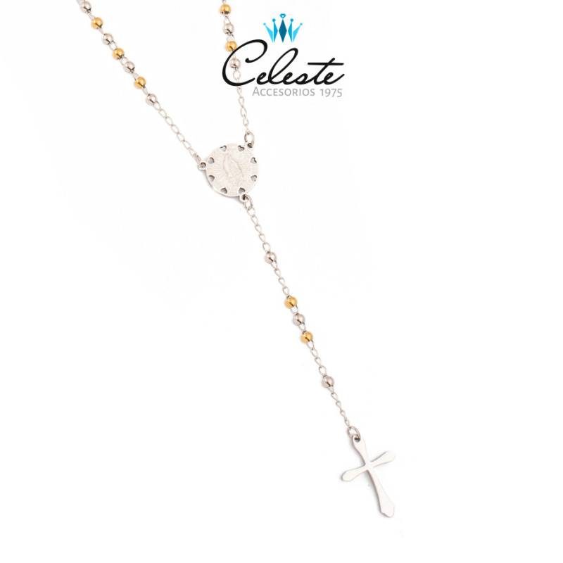 ROSARIO ACERO BICOLOR CRUCERO VIRGENCITA CORAZONES