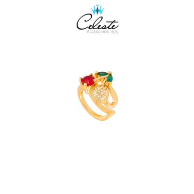 EARCUFF CEREZAS MICROZIRCONES, LAMINADO ORO