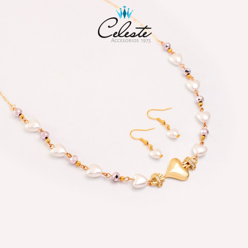 J1520 - JUEGO CORAZONES EN PERLA Y MURANOS, RODIO