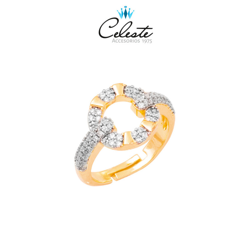 ANILLO BICOLOR FIGURA EN MICROZIRCONES AJUSTABLE, RODIO