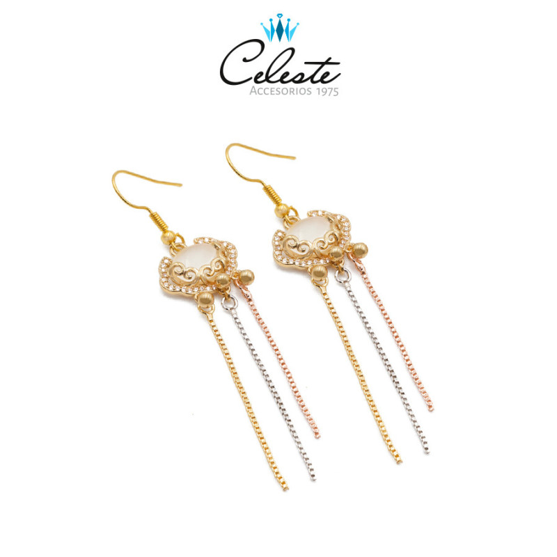 ARETE PIEDRA OJO DE GATO Y TIRAS EN 3 TONOS, COVER GOLD