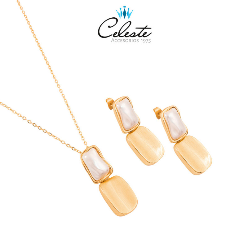 JUEGO ACERO PLACAS Y PERLAS