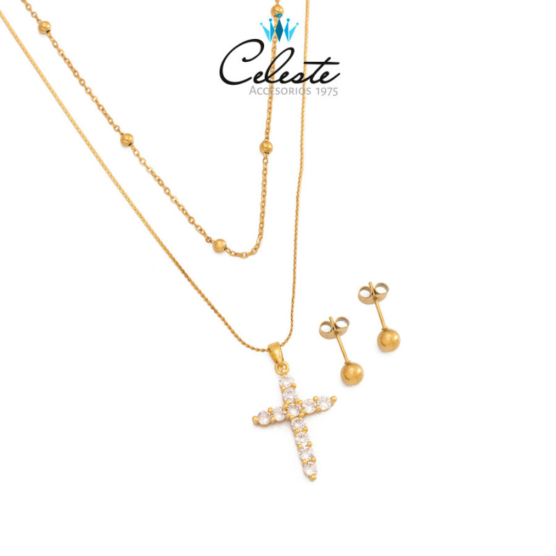 JUEGO ACERO cruz EN ZIRCONES