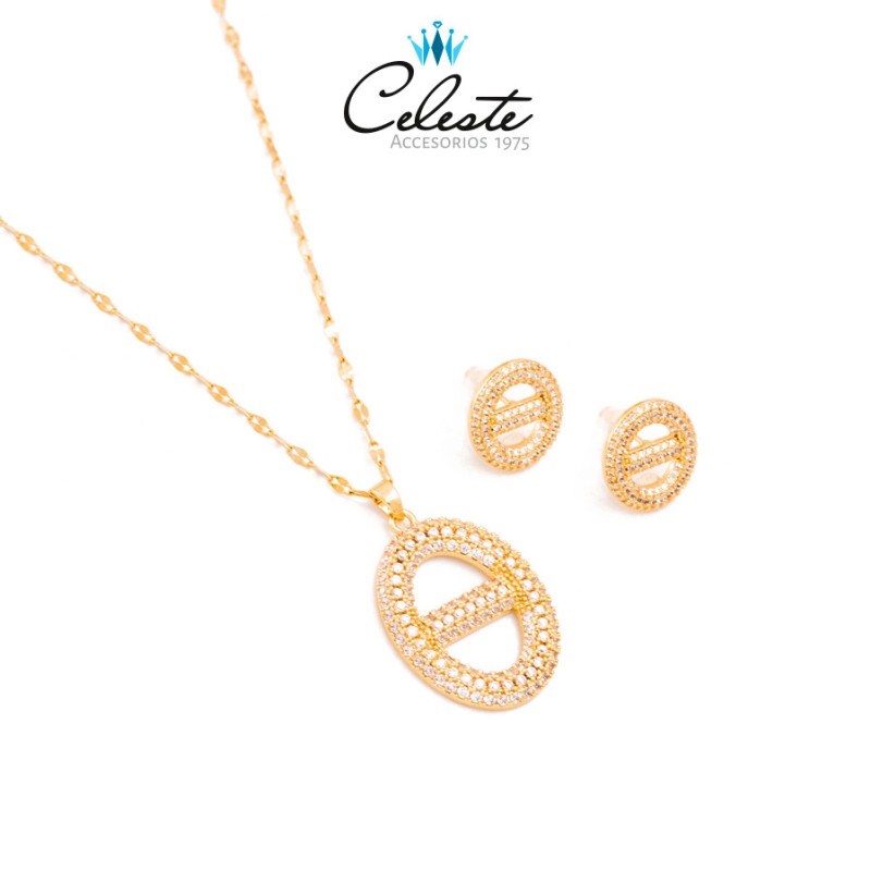JF2452 - JUEGO ACERO OVALO EN MICROZIRCONES Y...