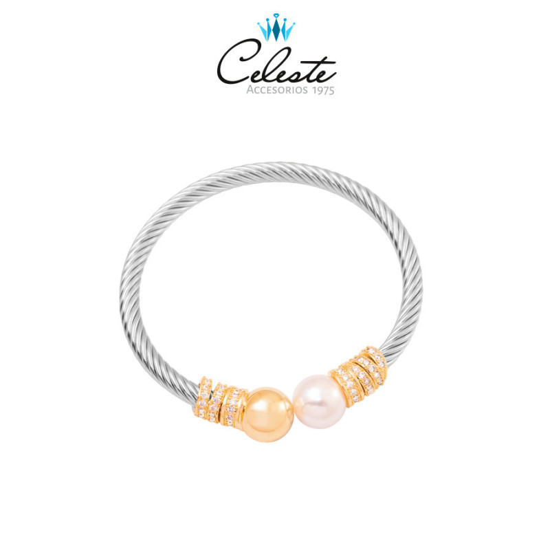 ARO BICOLOR PERLA Y BALIN MICROZIRCONES, RODIO