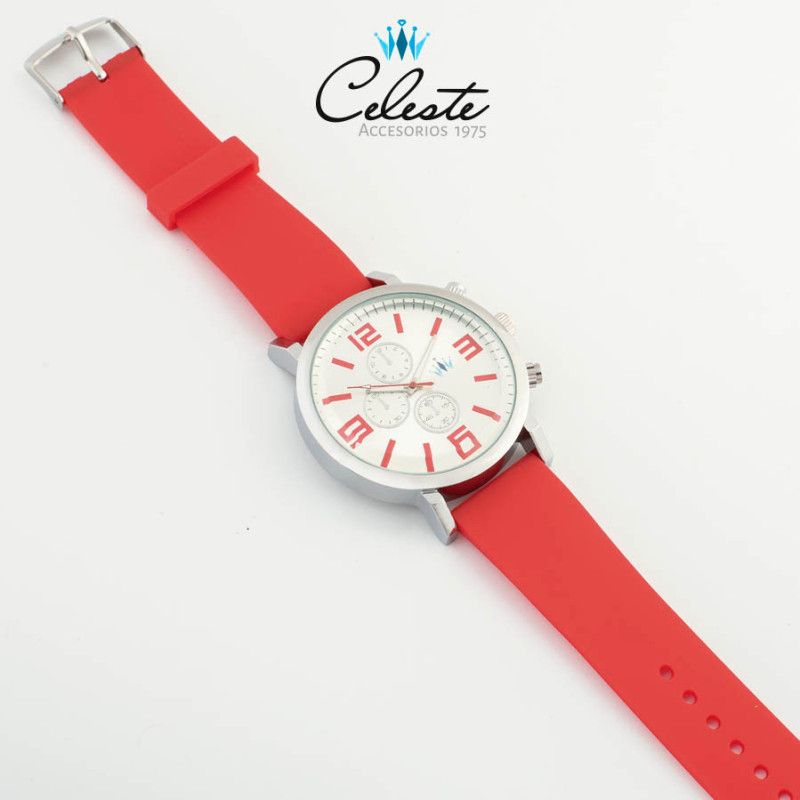 W450 - RELOJ CELESTE HOMBRE ROJO FERRARI BOTONES DECORATIVOS