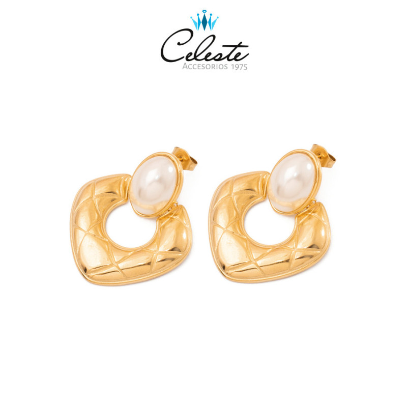 Z3288 - ARETE PERLA Y ABANICO, COVER GOLD