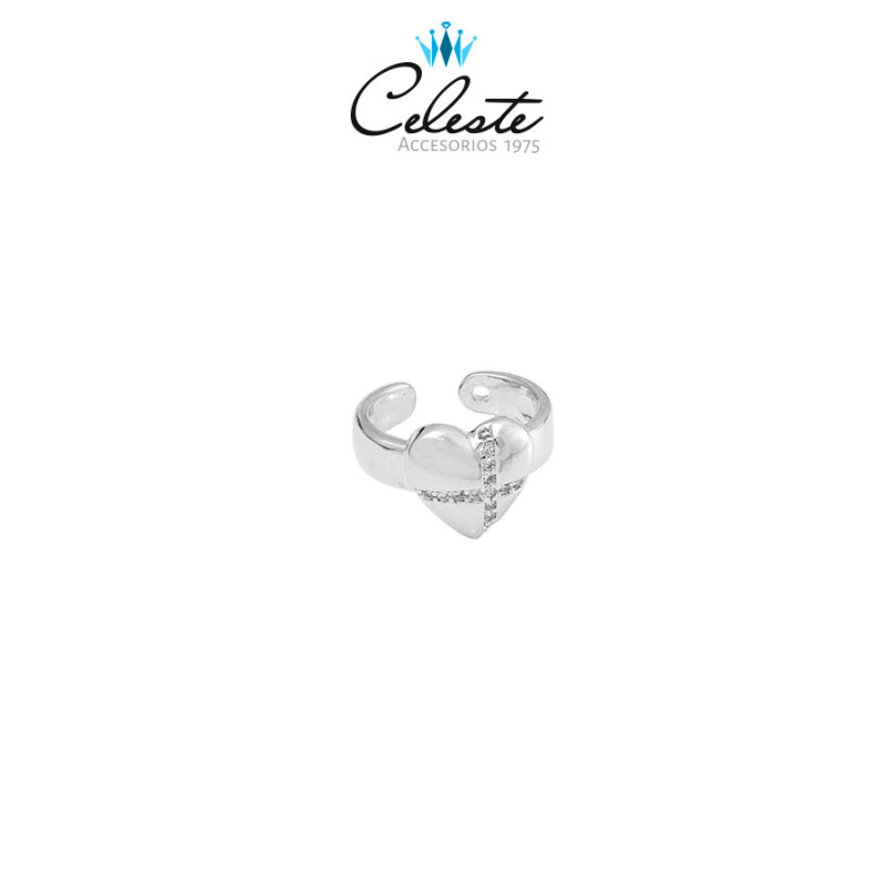 EARCUFF CORAZON Y CRUZ DE ZIRCONES, RODIO