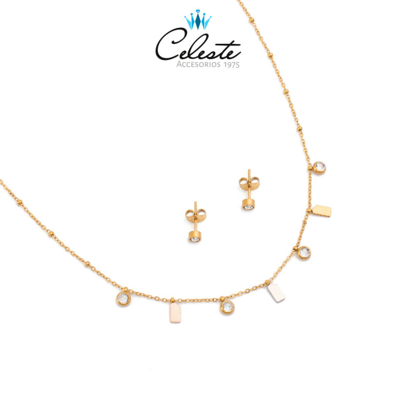 J1219 - JUEGO ACERO PLACA EN 3 TONOS Y ZIRCONES