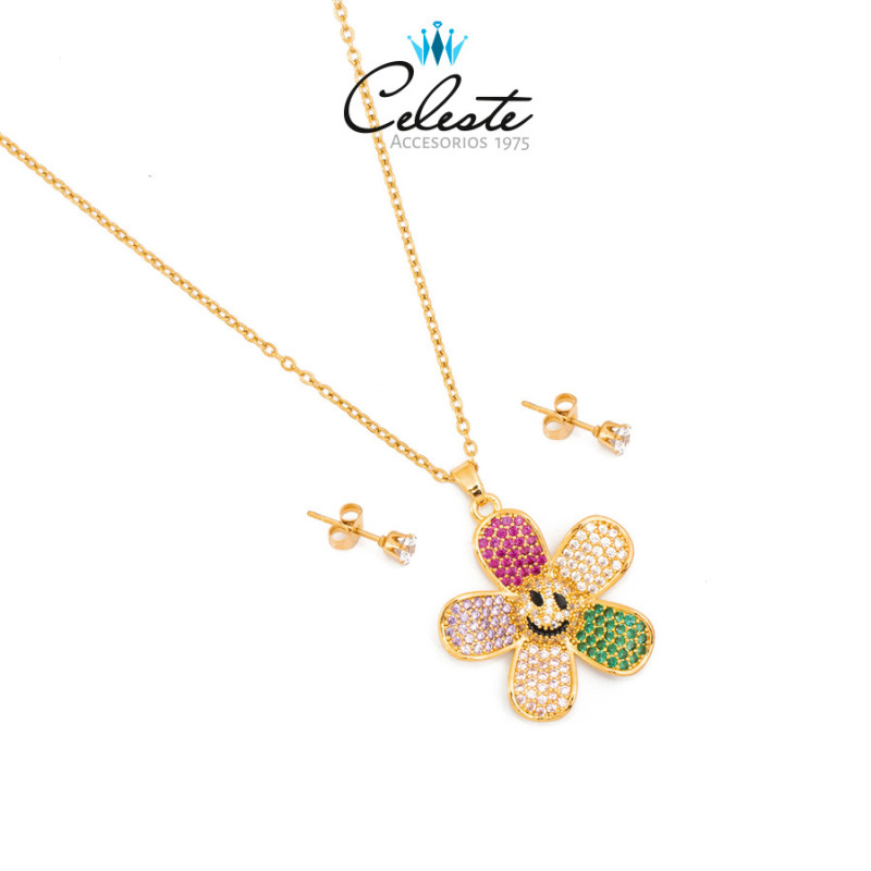 J1283 - JUEGO ACERO MARGARITA EN MICROZIRCONES DE COLORES