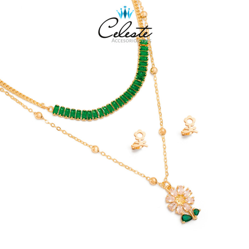 JUEGO MARGARITA Y ZIRCONES VERDE ESMERALDA, COVER GOLD