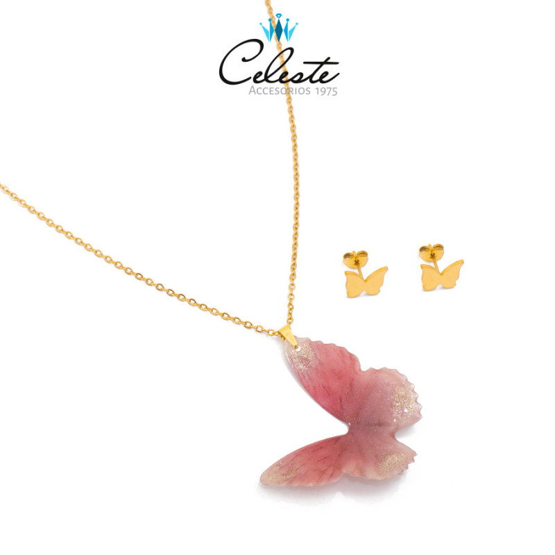 JUEGO ACERO MARIPOSA ACRILICO DECORADA