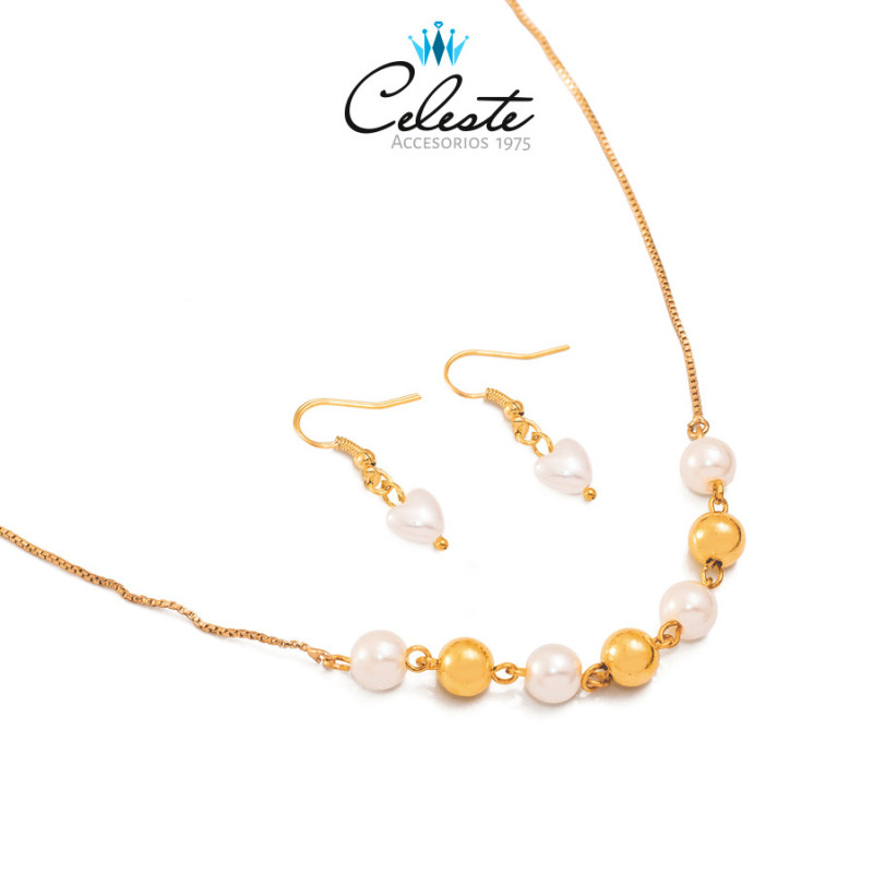 J1533 - JUEGO LARGO PERLAS DE CORAZON, 2 FUNCIONES, LAMINADO ORO