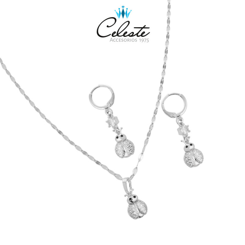 J1856 - JUEGO ESPECIAL MICROZIRCONES, COVER GOLD, CADENA ACERO, MARIQUITA