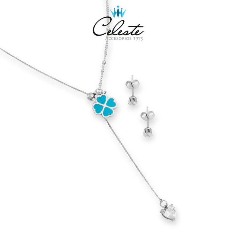 JUEGO ACERO TREBOL Y ZIRCONES AJUSTABLE CORVATERO
