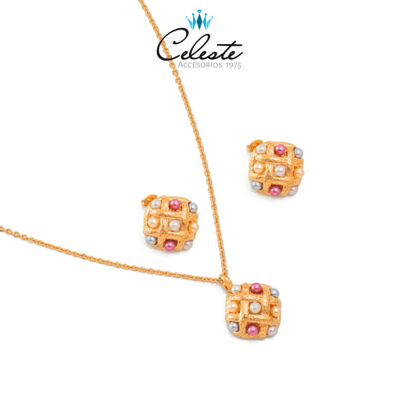 J1875 - JUEGO ACERO GRANDE ESPECIAL FIGURA CON PERLAS DE COLORES