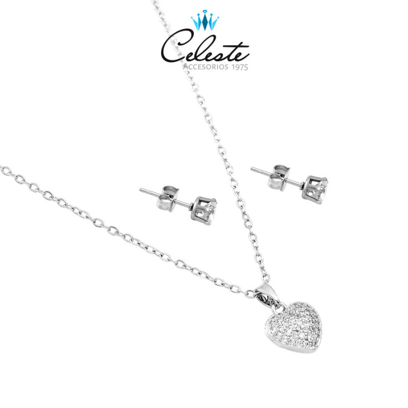 J2116 - JUEGO CORAZON EN MICROZIRCONES, ACERO