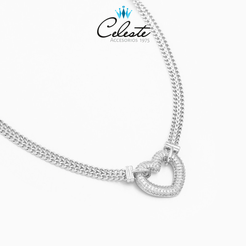 JUEGO GARGANTILLA CORAZON EN MICROZIRCONES, RODIO