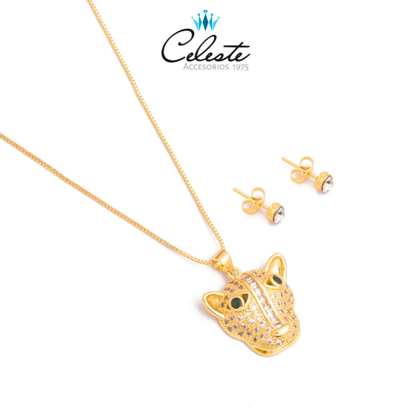 JUEGO JAGUAR MICROZIRCONES CADENA AJUSTABLE COVER GOLD