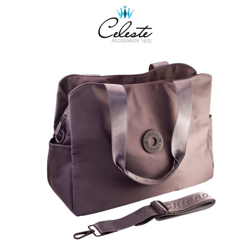 BOLSO GRANDE MATERIA TEXTIL IMPERMEABLE FORRADO, 4 BOLSILLOS Y 1 EXTERNO, 34X28CM, MORADO
