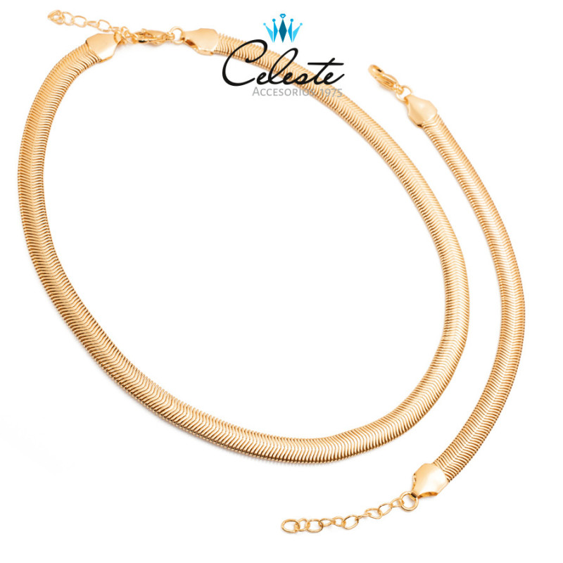 JUEGO CADENA Y PULSERA ANCHA ESPINA DE PESCADO, COVER GOLD