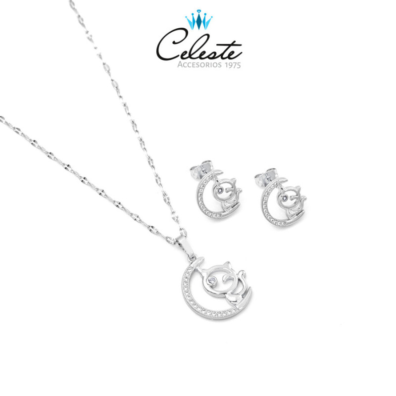 J2058 - JUEGO GATICO Y LUNA EN ZIRCONES, COVER GOLD