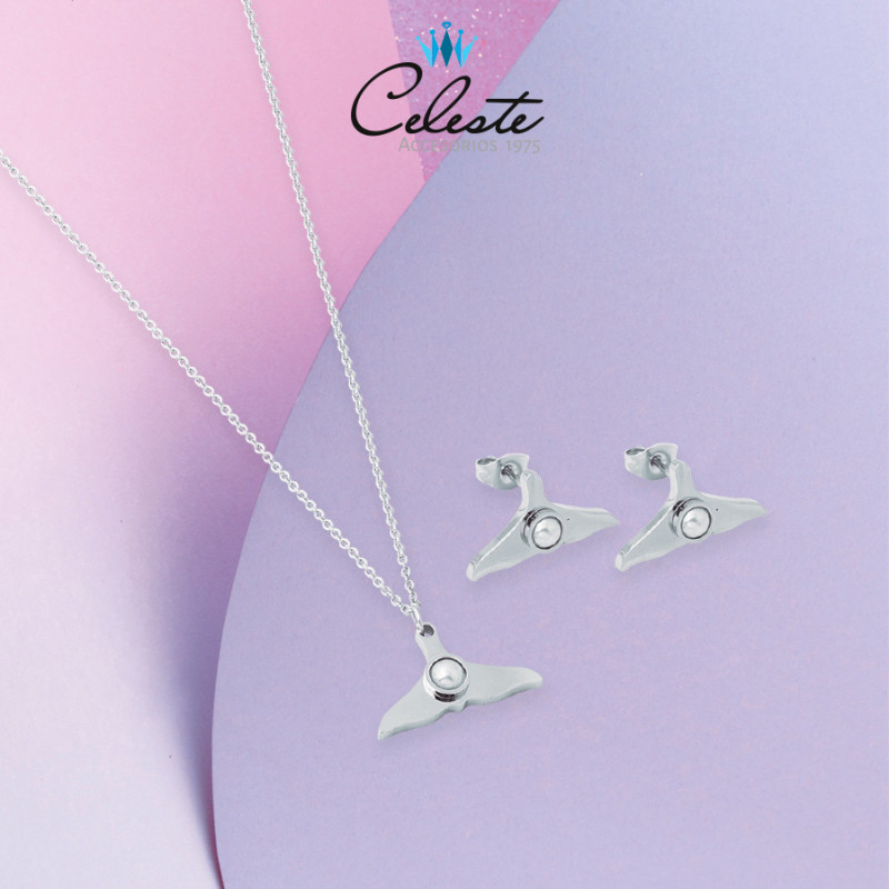 JUEGO ACERO COLA DE SIRENA Y PERLA