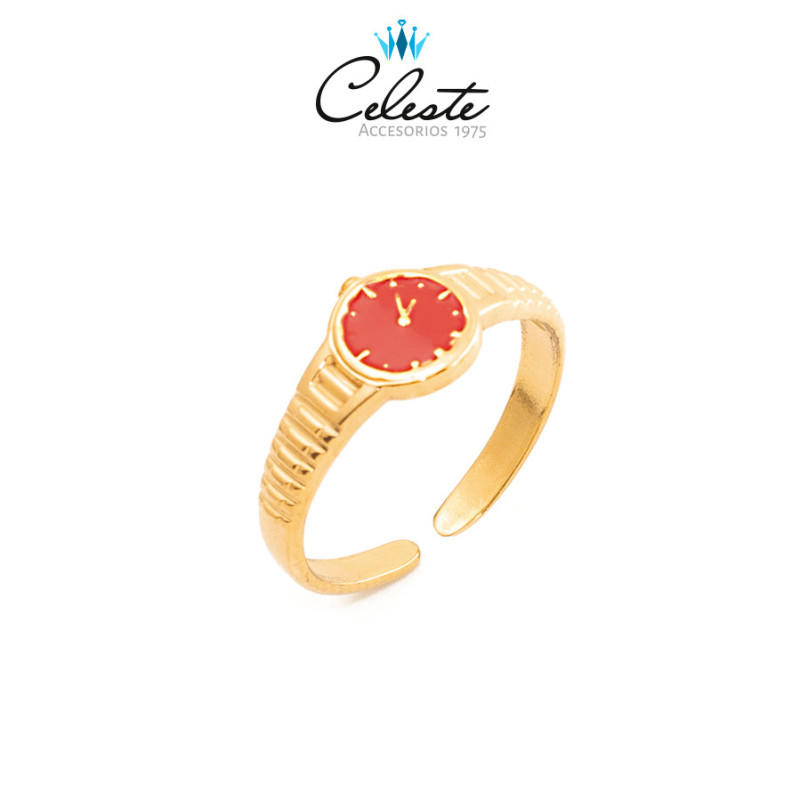 ANILLO AJUSTABLE RELOJITO ROJO COVER GOLD