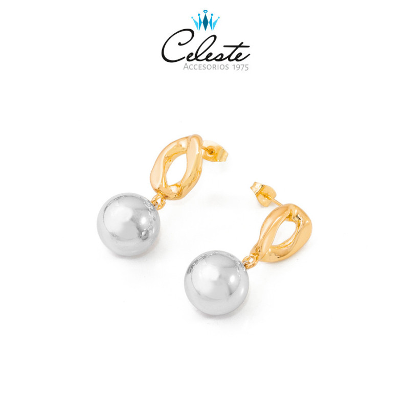 Z2336 - ARETE ESLABN Y BOLA BICOLOR RODIO