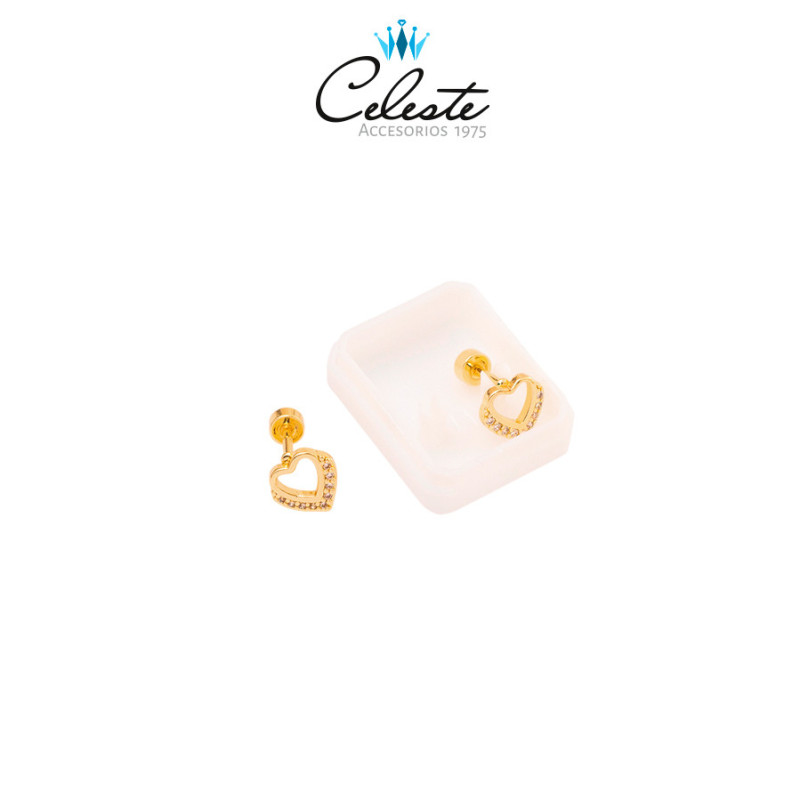 Z3574 - TOPO CIERRE DE SEGURIDAD CORAZON EN MICROZIRCONES,COVER GOLD