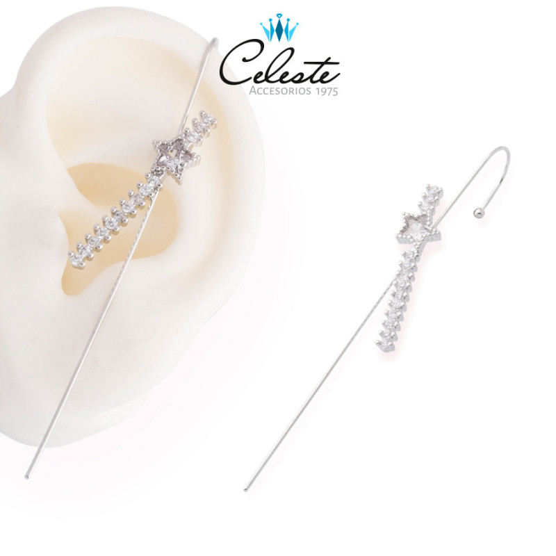 ARETE LARGO PASANTE LINEA DE ZIRCONES Y ESTRELLA COVER GOLD