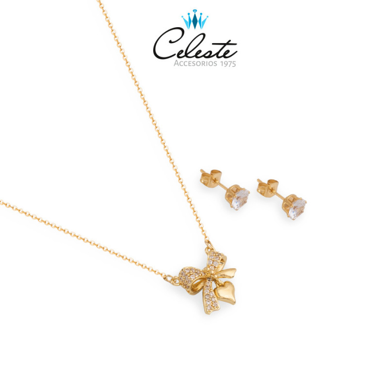 J2116 - JUEGO CORAZON EN MICROZIRCONES, ACERO