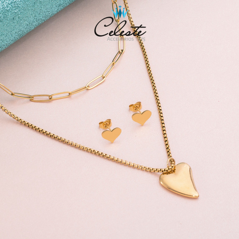 JUEGO ACERO CORAZON ALARGADO CADENA 2 VUELTAS