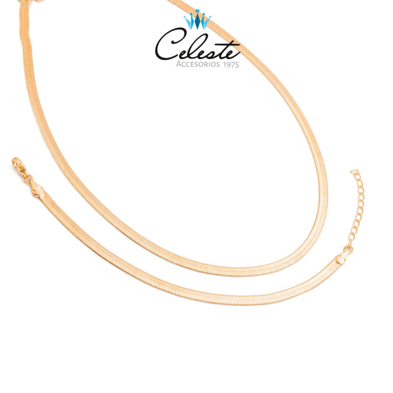 JUEGO CADENA PLANA CON PULSERA, COVER GOLD