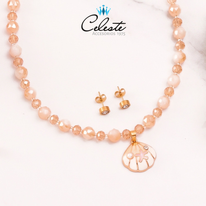 J1359 - JUEGO CONCHA DECORADA MURANOS Y CADENA...