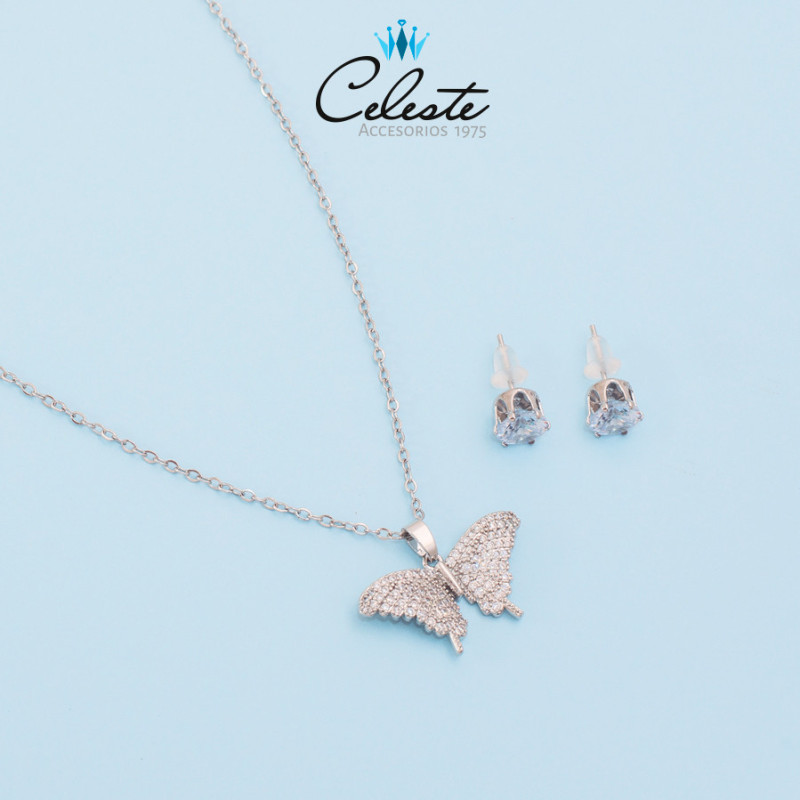 JUEGO MARIPOSA EN MICROZIRCONES, RODIO