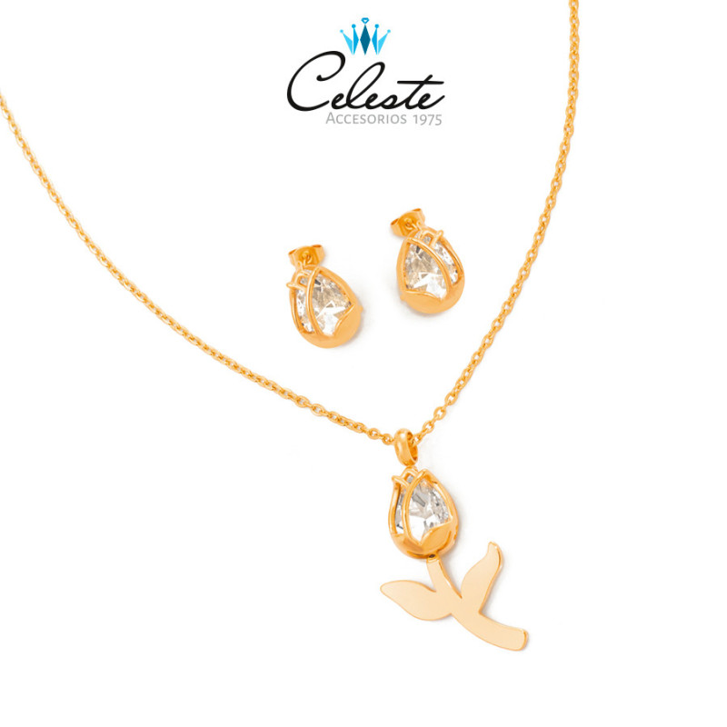 JUEGO ACERO GRANDE ESPECIAL FLOR TULIPAN CON ZIRCONES