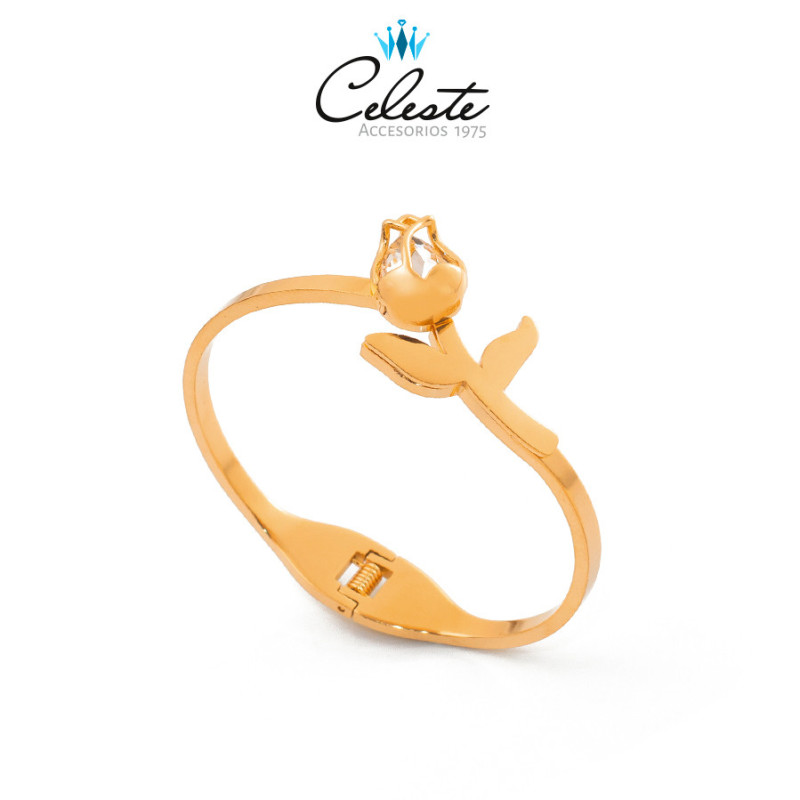 PULSERA ACERO GRANDE ESPECIAL FLOR TULIPAN CON ZIRCONES