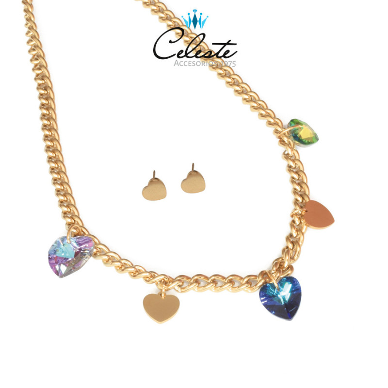 JUEGO ACERO CORAZONES SWAROVSKI DE COLORES