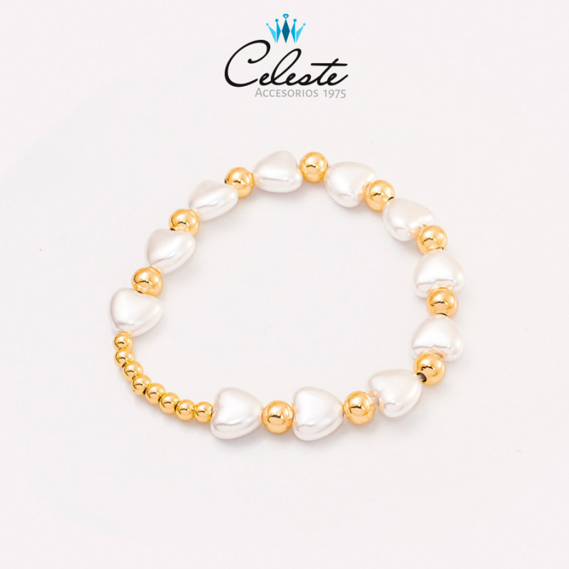 PULSERA CORAZONES EN PERLA Y BALINES,