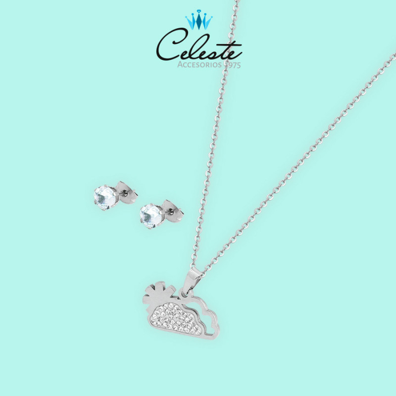 JUEGO ACERO NUBE Y SOL CON ZIRCONES