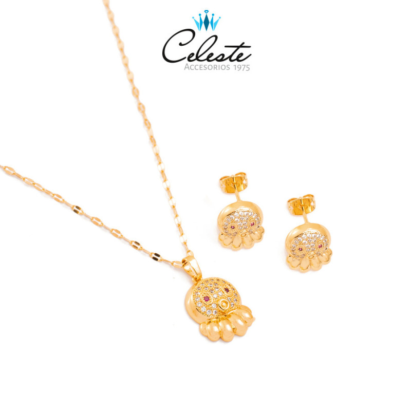 J2046 - JUEGO PULPO EN MICROZIRCONES, COVER GOLD