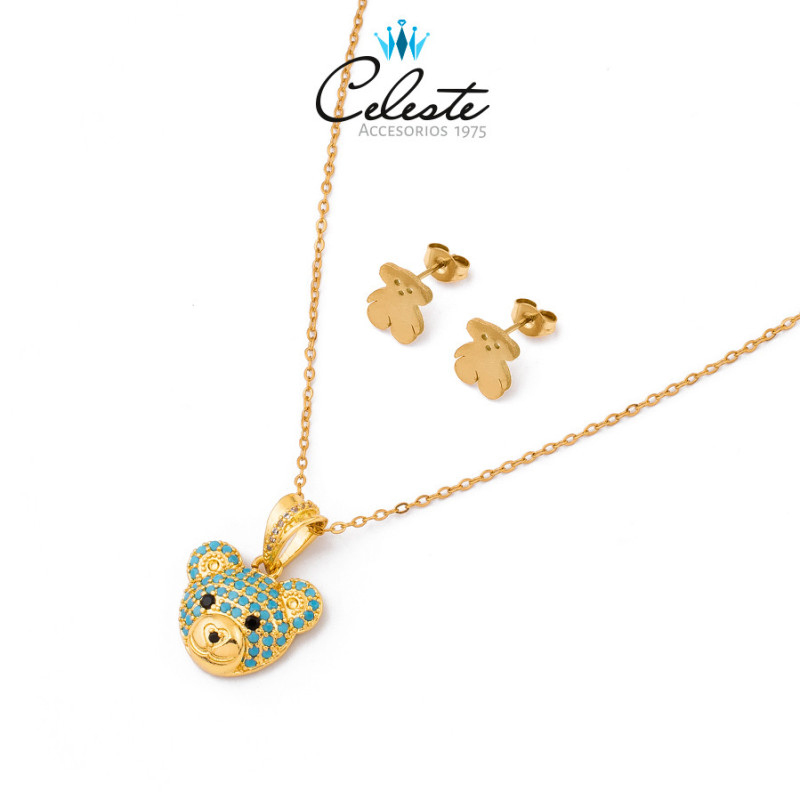 JUEGO ACERO OSO EN MICROZIRCONES TURQUEZA