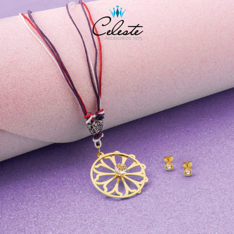 JUEGO PLACA FLOR CORDONES DEC OLORES TOPO ZIRCON ACERO